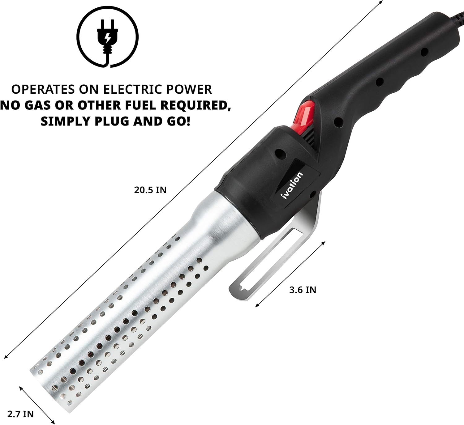 Get That Perfect Glow in Just 60 Seconds: Electric charcoal lighter torch delivers fast, dependable heat for starting BBQ grills, indoor fireplaces, outdoor fire pits, wood burning pizza ovens, smokers, and chimineas with no flames necessary.