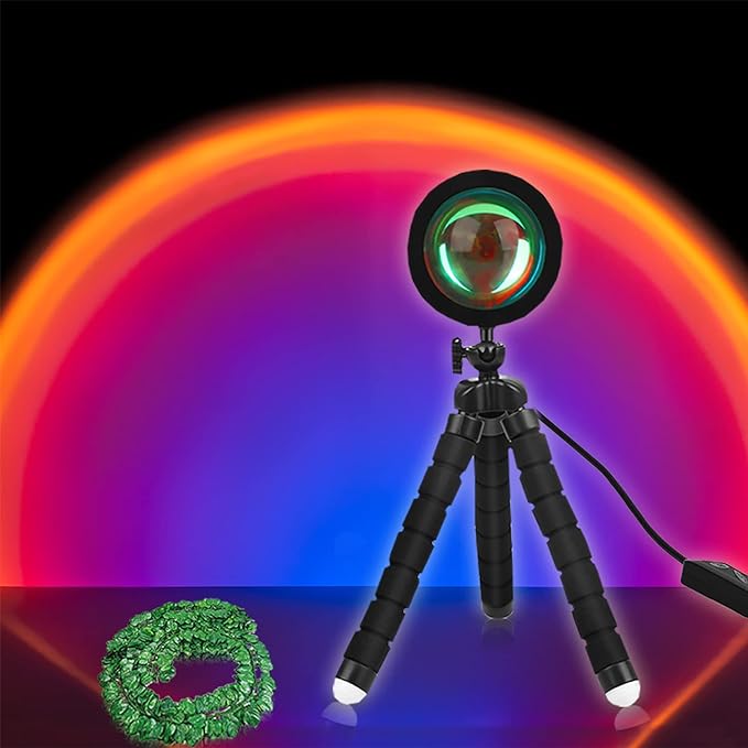 Create stunning atmospheres with this remote controlled LED sunset lamp. Designed for aesthetic lighting, it projects a soft gradient glow perfect for photography, social media content, parties, or calming ambience. The fully rotatable tripod lets you customize the angle and effect, while the remote makes switching colors and brightness effortless. Stylish and functional, this trendy lamp brings warm, dreamy lighting to any space.
